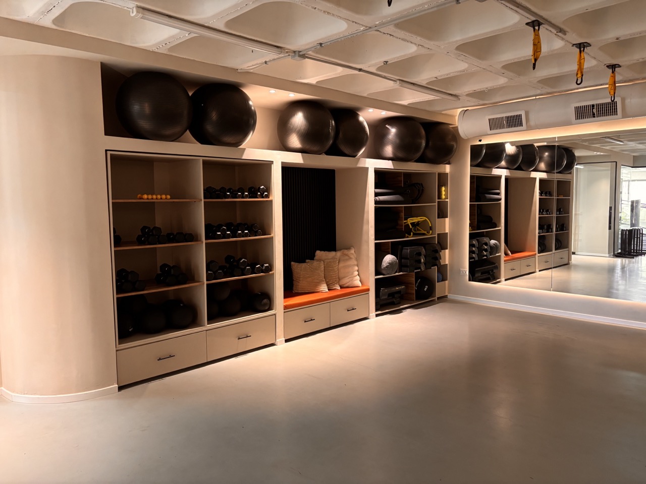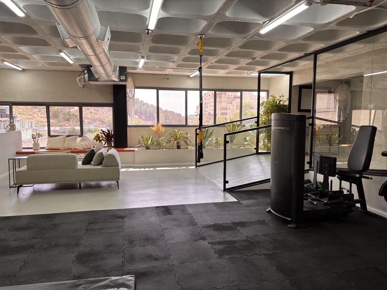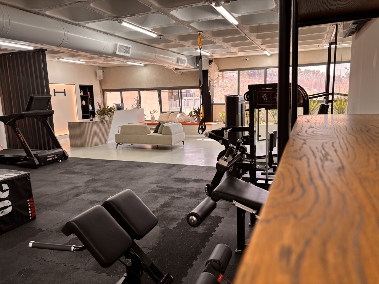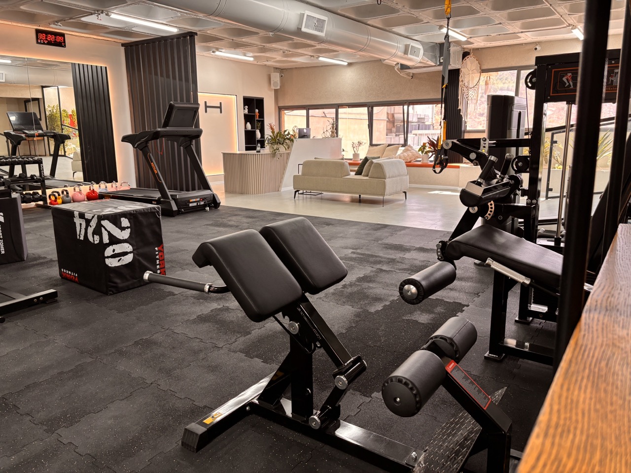 منطقة أنيقة بآلات جيم متطورة (جري، أوزان، كابلات) لتمارين شخصية تنحت جسمكِ.