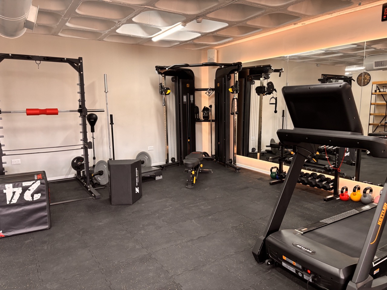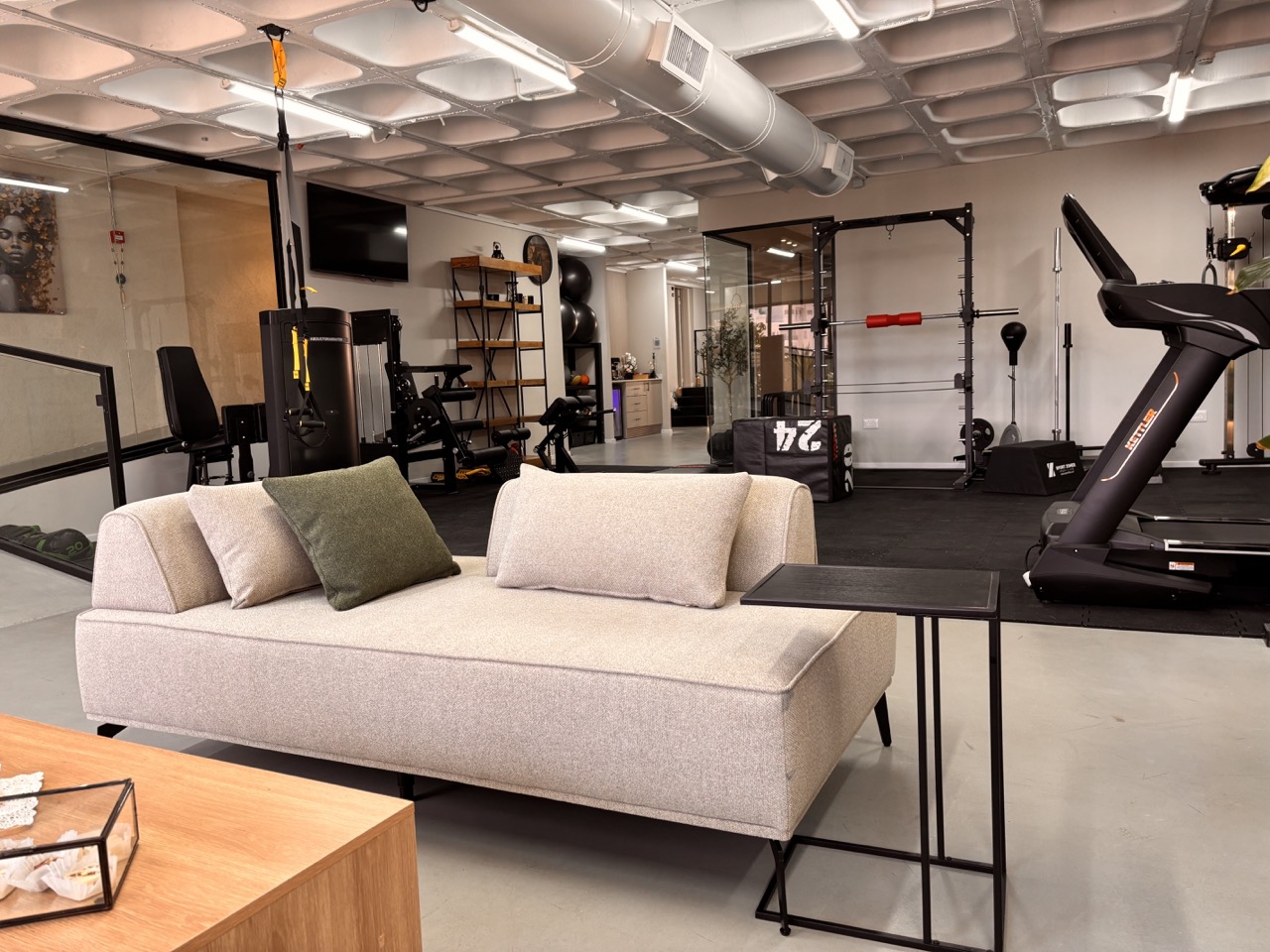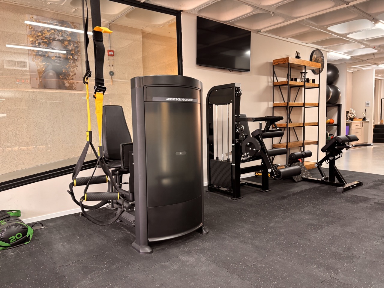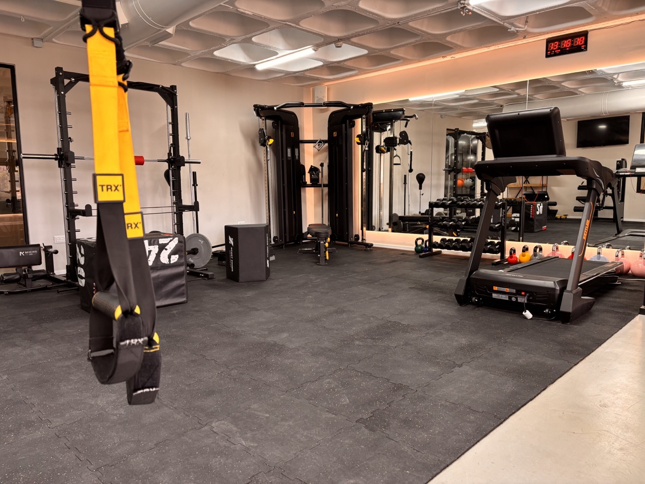 منطقة أنيقة بآلات جيم متطورة (جري، أوزان، كابلات) لتمارين شخصية تنحت جسمكِ.